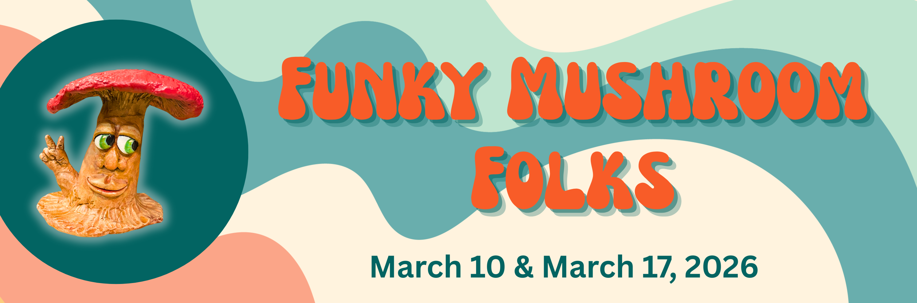 DESCRIPTION: Work with artist Debra Haley to create an epoxy clay fun and funky mushroom person in this two part workshop. Evening one on March 10 will be sculpting your creation and evening two on March 17 will be painting and putting on the finishing touches to your mushroom friend.
