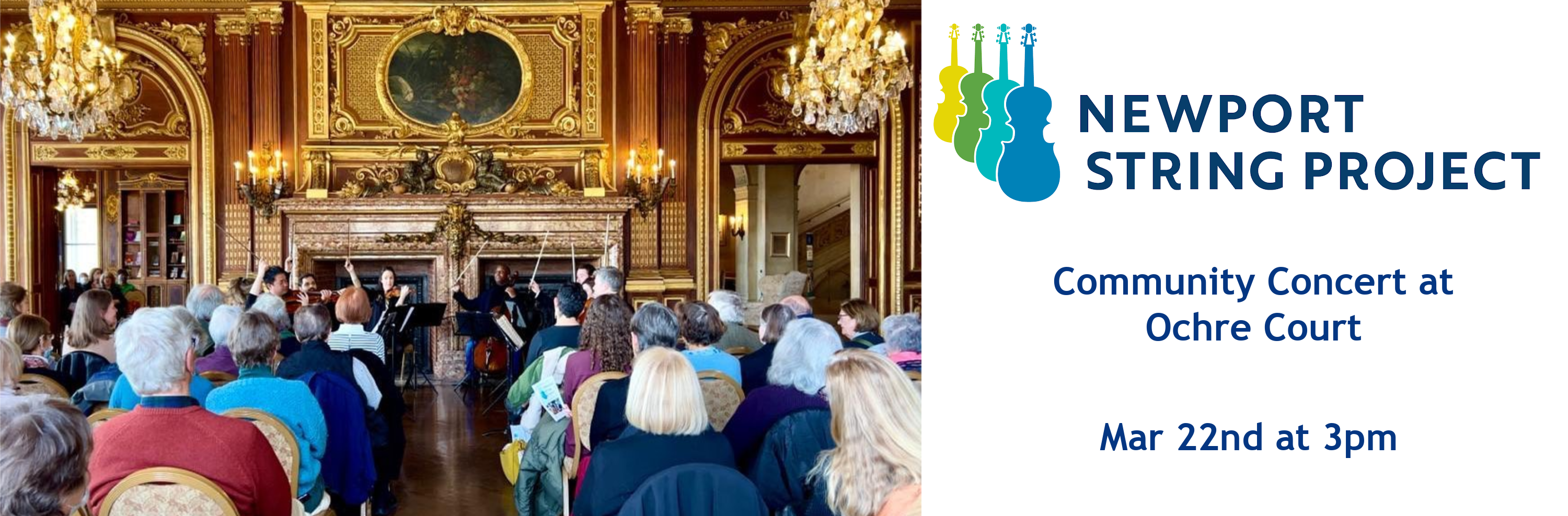 The Newport String Project presents its free annual community concert at Ochre Court on March 22, 2026. This special performance will include the Newport String Quartet. Donations to support NSP are welcome.